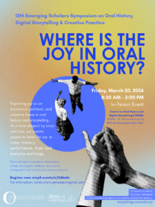 COHDS is a research centre based at Concordia University which explores the links between oral history, digital media, the arts and education while providing tools and resources to support its members in their research. We serve as a point of convergence, meeting and discussion for all those interested in oral history within the university and beyond.